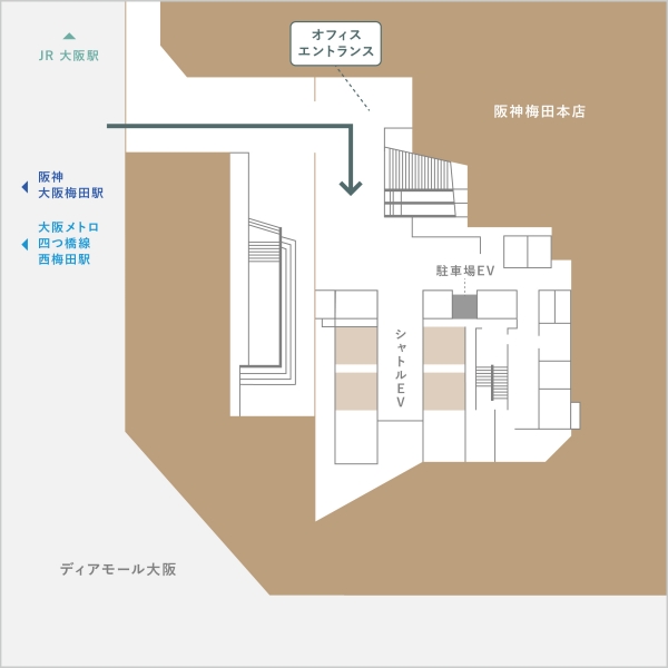 オフィスタワー地下1階または1階からシャトルエレベーターで11階オフィスロビーまでお上がりください。