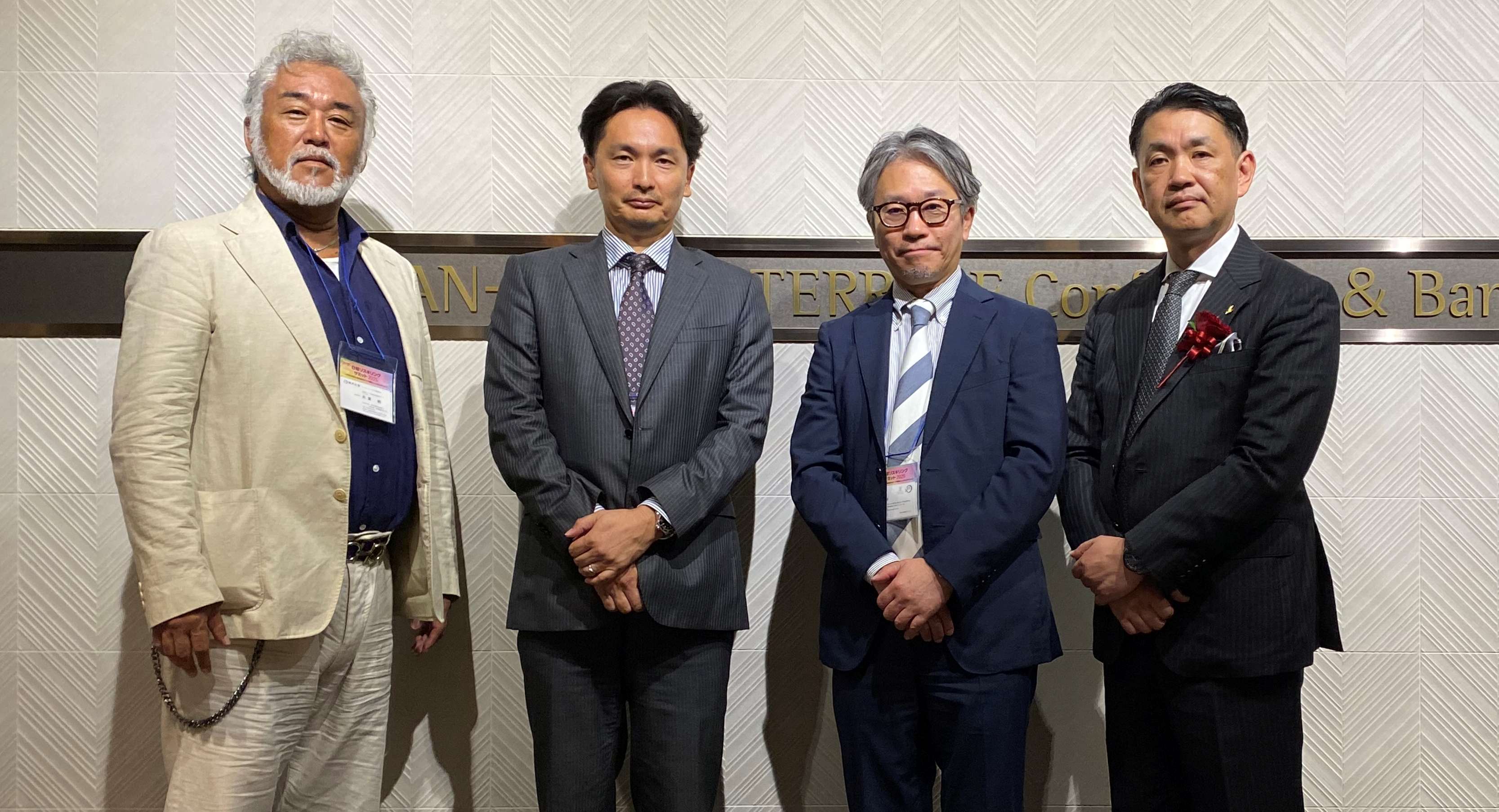 左から)神戸大学教授 長廣 剛さん、吉原さん、株式会社エイチ・ツー・オーKU カーボンニュートラルデザイン 代表取締役社長 山西 智さん、エイチ・ツー・オーリテイリング株式会社 常務執行役員 渡邉 学さん