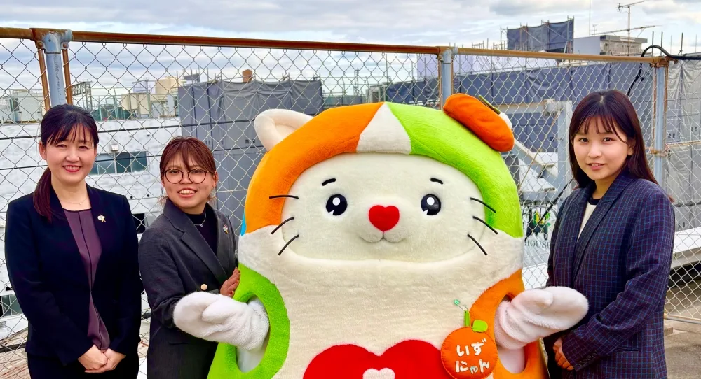 ショッピングセンターは今、来館目的の多様化やオンライン消費の拡大により、単なる「買い物の場」から、地域の人々が集い、つながる「交流の拠点」へと求められる役割が変わりつつあります。エイチ・ツー・オー商業開発が運営する商業施設「イズミヤSC」では、2024年11月に誕生した公式キャラクターの「いずにゃん」が、施設の想いを可視化し、お客さまとの交流を深めるための架け橋として、日々奔走しています。今回は、いずにゃんの生みの親であり、共に歩む販売促進部の宮澤さん、伊集さん、奥林さんに、誕生の舞台裏や「ゆるバース2025」での熱狂、そして地域と共に描く未来についてお聞きしました。