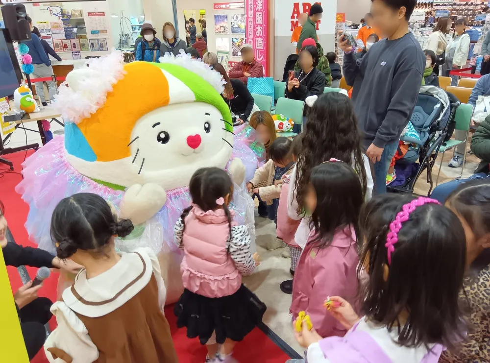 イベントに参加し、地域の方々と交流するいずにゃん